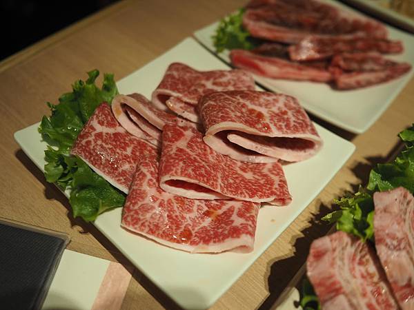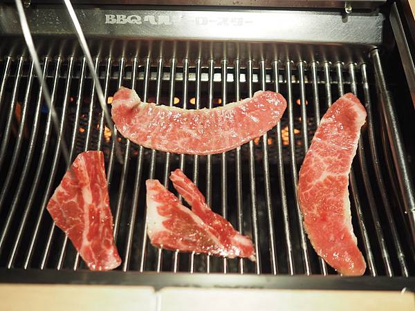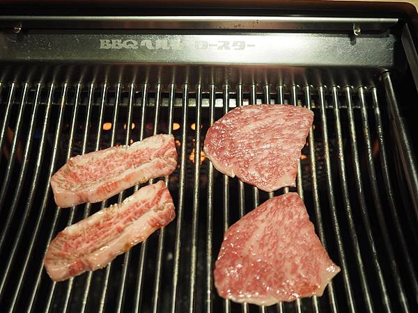 先烤一般的 牛五花(左邊下面兩塊) 及 牛里肌 (長型兩塊)