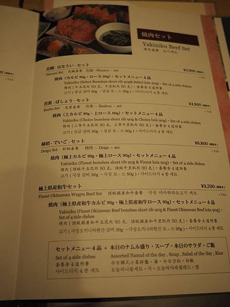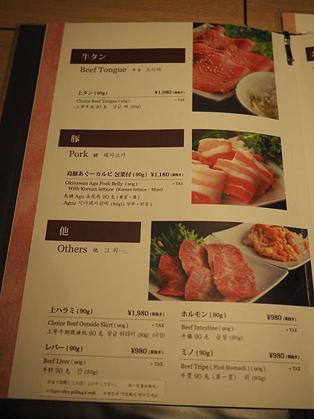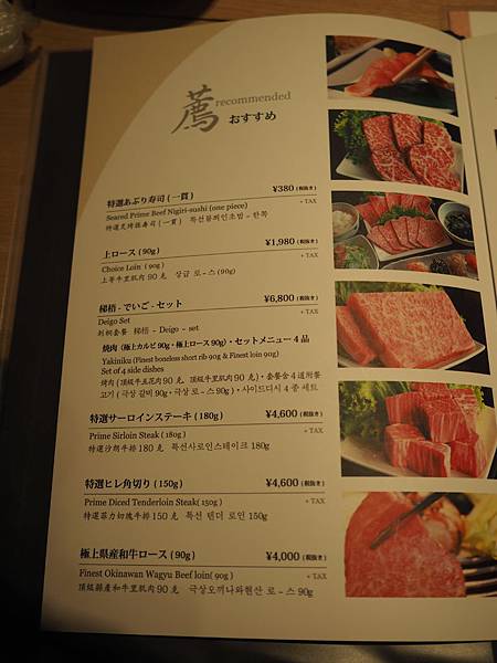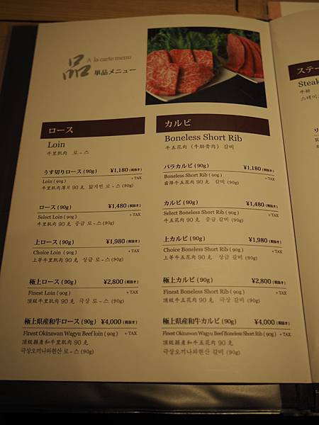 單點 牛五花90g 1180 yen 及 牛里肌90g 1180yen