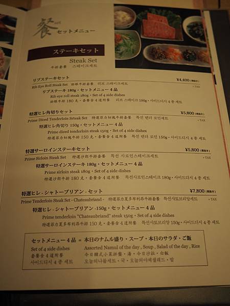 極上縣產和牛set(頂級縣產和牛牛五花90g +頂級縣產和牛里肌90g)+ 四樣小菜/白飯一碗/紫菜湯 9200yen