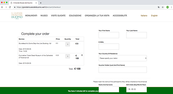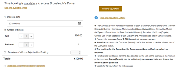 下方 ”Brunelleschi's Dome Skip-the-Line Booking" 打勾 並選擇您要預約的時間