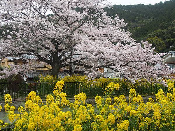 沿著小河流兩旁的櫻花(在上面)油菜花(下面)相互呼應,美極了