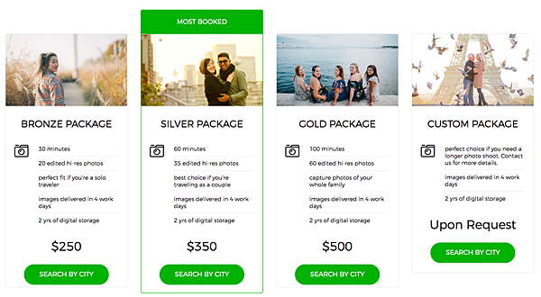 1. 多種選擇: 每個城市都有合作的攝影師, 你可以在網站上先看攝影師的作品,看喜歡哪一位攝影師