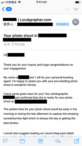 客服人員很有耐心,大大小小的問題都可以問他,他也會很樂意跟攝影師溝通,為你安排, 比如說