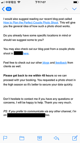 可可和攝影師用Whats App 溝通,若預定日期天候不佳,攝影師會想辦法也可能在行程允許情況下改天