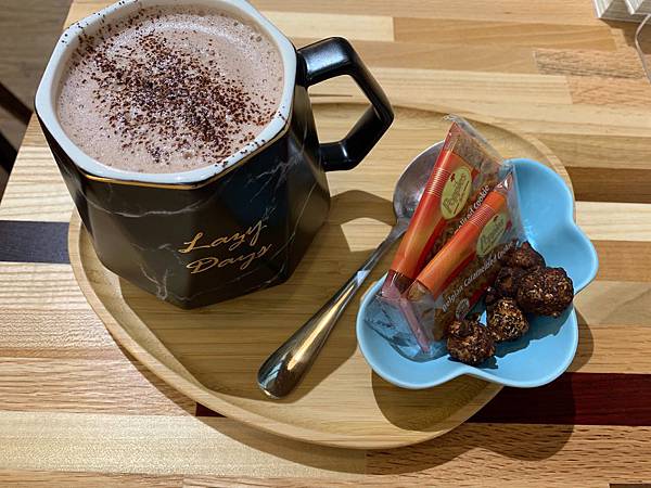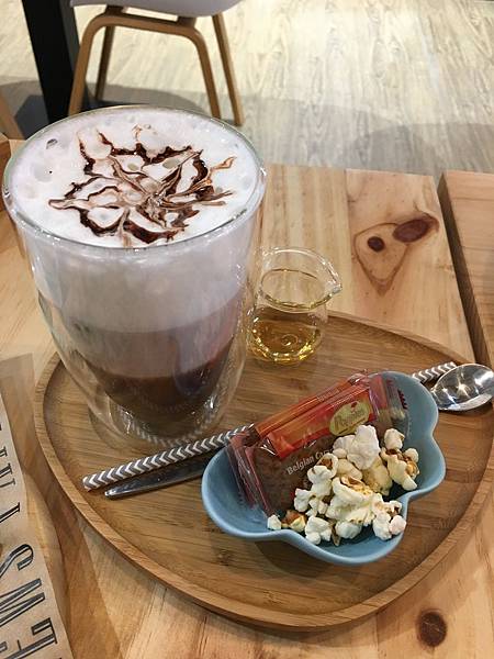 很香濃的巧克力!不會太甜! 旁邊附巧克力爆米花 還有 薄餅