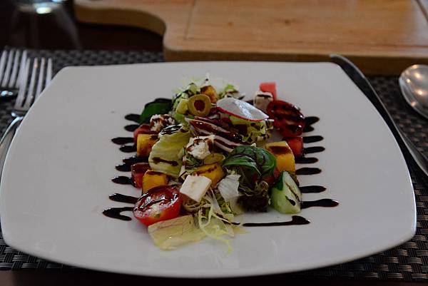 西瓜、生菜、小黃瓜、番茄 配菲達起司 佐油醋 吃起來非常清爽!