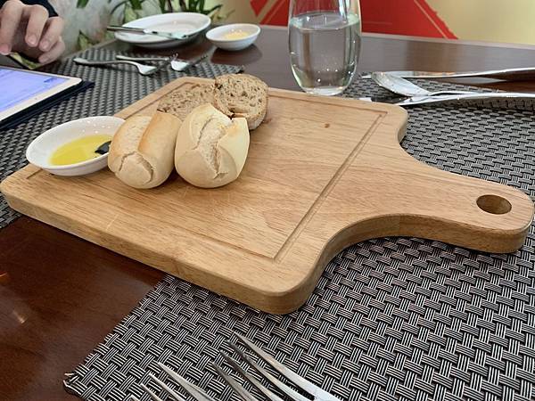 餐前麵包 很Q很好吃! 搭配的是橄欖油及油醋醬
