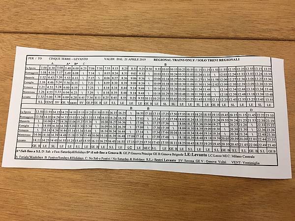 買一日票時會給你time table,可以參考規劃行程(事後發現幾乎每班車都會delay 2~5分鐘!)