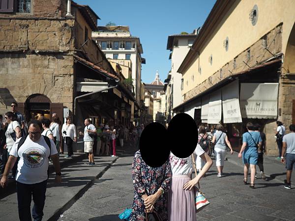 橋正上方是1565年建造的瓦薩里走廊Vasari Corridor, 橋上有翡冷翠金雕工藝之父 韋努拖 切利尼 Benvenuto Cellini半身像
