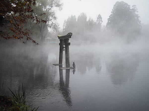我們那天大清早雲很多,天空陰陰灰灰,沒有看到日出,霧太大,大約於日出前30分鐘抵達金鱗湖
