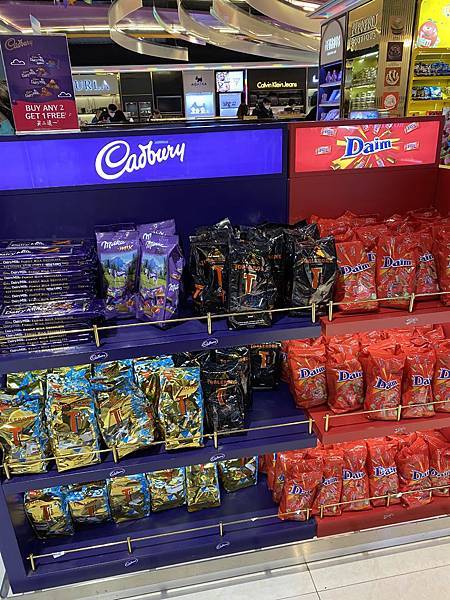 Lindt 巧克力, GODIVA, M&M, KitKat, Toblerone(三角巧克力),BORDER餅乾,加倍加棒棒糖,Daim等等