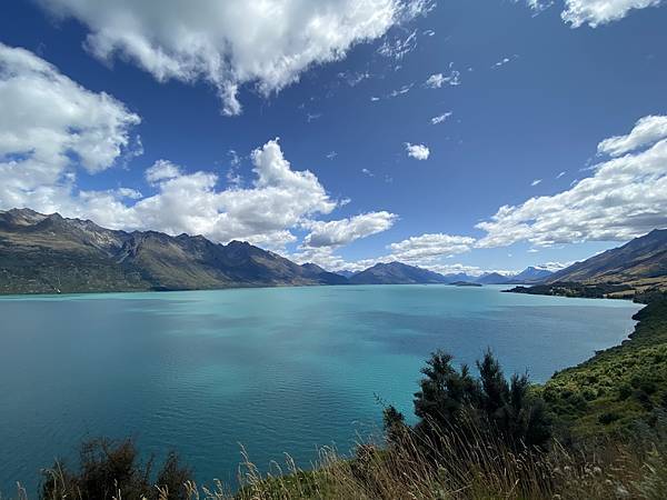 真的好美呀~~藍天白雲 配上藍綠色的湖