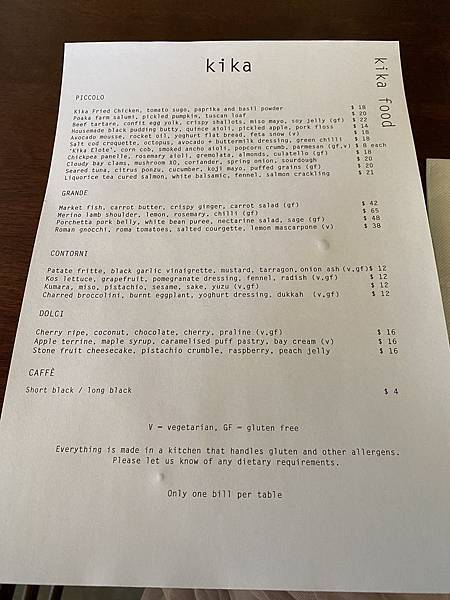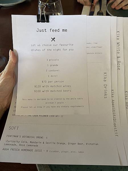 三樣開胃菜 ㄧ樣主菜 兩樣配菜 一個甜點 每人NZD 70