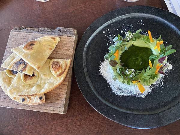這倒很特別,酪梨醬酸酸的!永烤餅去沾酪梨醬來吃~~特別的味道!