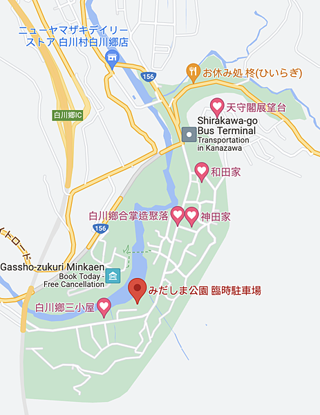 我們停在みだしま公園 臨時駐車場 Midashima Park Parking Lot 如下圖標示 (停車場附近有三小屋可以拍照)