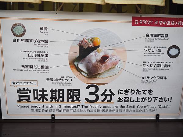 也很推薦美食地圖上4號 飛驒牛握壽司 賞味時間只有三分鐘, 三分鐘要吃掉!
