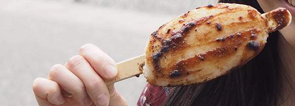 其實就是一團扁平狀的麵粉 塗上甜甜的醬油去烤來吃