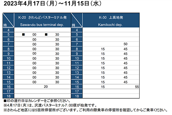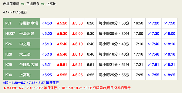 bus 時刻表:https://www.nouhibus.co.jp/route_bus/kamikochi-line-zh/#timetable (30分鐘一班)