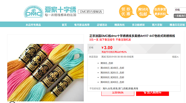 可可是跟"愛家十字繡"買DMC線 (目前為止已經購買三次囉!!)