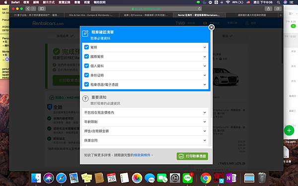 把確認單印出後就可以到現場領車囉! 記得要攜帶 確認信, 國際駕照, 台灣的駕照, 護照, 主駕駛名下的信用卡