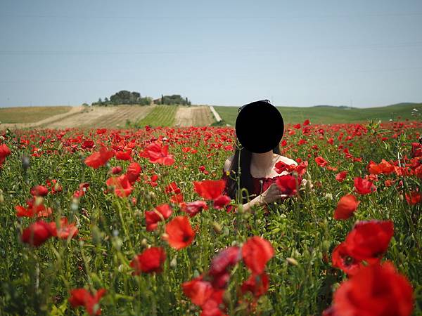 雖風搖曳,滿滿一片罌粟花田,為黃黃綠綠的Val d’Orcia景色點綴更繽紛的顏色,這絕對是托斯卡尼一大特色風景!一般來說五月底到六月初,所以運氣也是很重要的!!