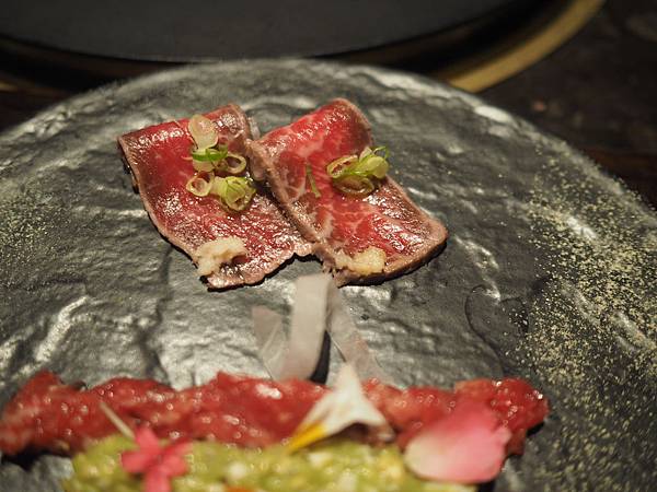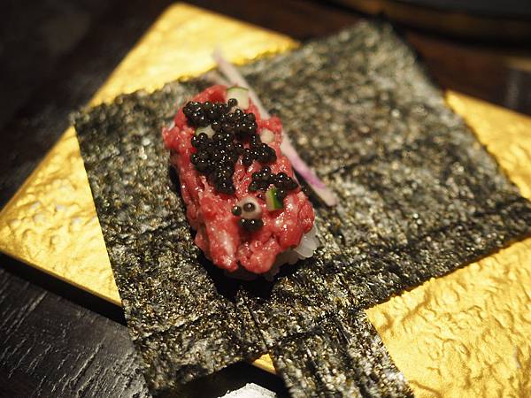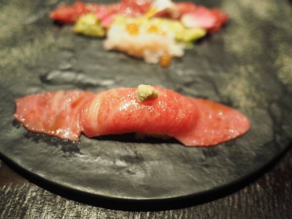 第一個是生和牛握壽司,一口吃下去~~真的超讚!牛肉非常嫩又甜