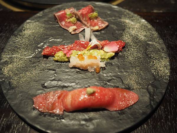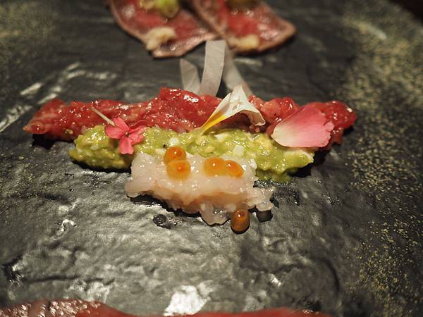 第二種是生和牛,酪梨醬,生蝦子鮭魚卵