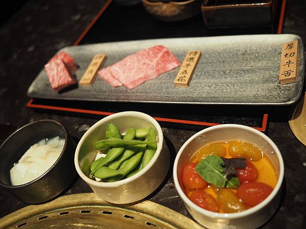 另外附了三樣小菜(醃漬蕃茄 毛豆 醃漬蘿蔔)可以在燒肉享用之間換換口味