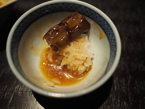 和牛月見燒 淋到飯上搭配食用 這個米是特別的美姬米