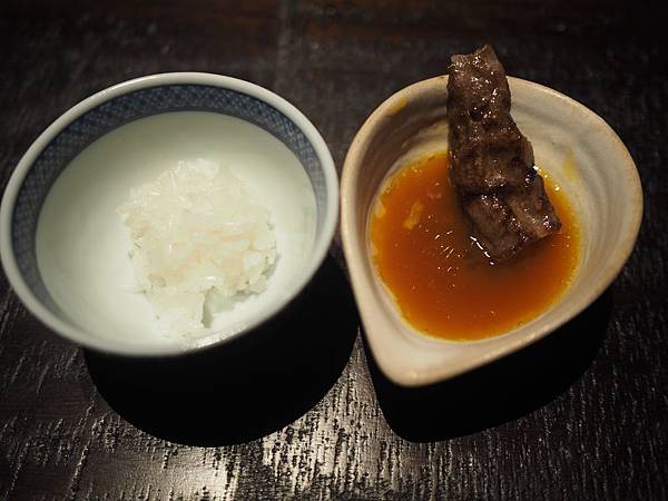 下面是蘿蔔泥還有燒肉醬,混合後沾牛五花吃~~~太美味了!!